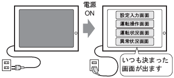 表示器の電源をONしたとき最初に表示させたい画面を指定しておくことができます。