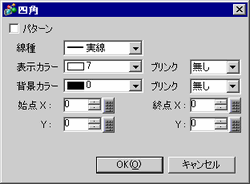 四角形の描画を指定アドレスに行います。「パターン」をチェックすると塗り込み四角形を描画します。