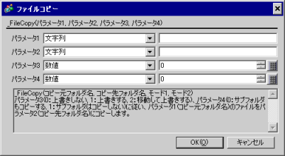 パラメータ1でフォルダ名または複数のファイルを指定し、上書き禁止でコピーを行った場合、同名ファイル以外のファイルのみコピーされます。