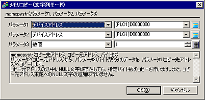 例 memcpystr([w:[PLC1]W30.3000], [w:[PLC1]BD1000], 5)