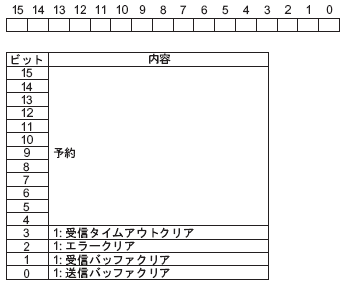 送信バッファ、受信バッファ、エラーステータスのクリアを行うためのコントロール変数です。このコントロール変数は、書き込みのみ有効です。
