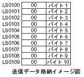 上記の例は、LS0100から10バイト分のデータを送信します。下記に送信データ格納イメージ図を示します。