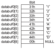 上記の状態に“ABCD”を連結する場合は以下の結果となります。NULL(0x00)が付加されます。
