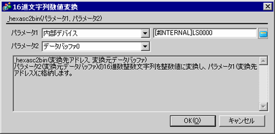 16進数の文字列をバイナリデータに変換する関数です。パラメータ2の16進数文字列を整数値に変換し、パラメータ1に格納します。
