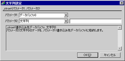 固定文字列をデータバッファに格納します。パラメータ2で指定した文字列をパラメータ1に格納します。