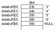 文字列“12345678”のオフセット2から4バイト分抽出したデータをdatabuf0 に格納します。