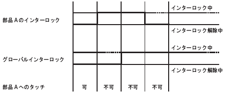 たとえば、個別の部品に対するインターロックは解除されていても、グローバルインターロック中の場合、その部品へのタッチは無効になります。