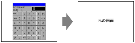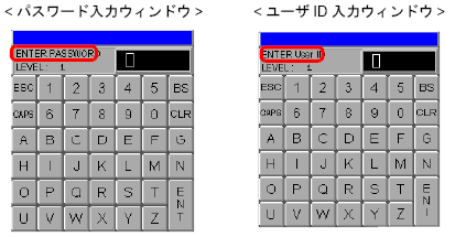 「ユーザIDモード」の場合は、ユーザID&パスワード入力ウィンドウから入力部分をタッチして各ウィンドウを表示します。