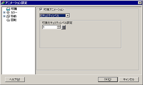 アニメーションの設定画面が表示されます。画面左のリストから[可視]を選択します。