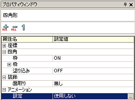 描画を選択し、[プロパティウィンドウ]の[アニメーション]で[...]をクリックしてもアニメーションの設定画面が表示されます。