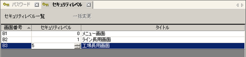 ライン長用画面(画面番号 : B2)の[セキュリティレベル]に「1」を、工場長用画面(画面番号 : B3)に「5」を設定して完了です。