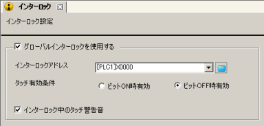 [インターロックアドレス]のビットが[タッチ有効条件]で指定した状態の場合のみタッチ操作が許可される機能です。