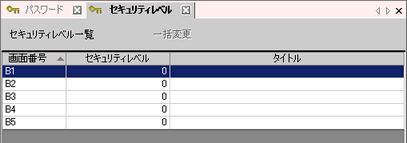 [セキュリティレベル一覧]では、画面単位にセキュリティレベルを設定します。画面にセキュリティレベルを設定すると、[パスワード設定]で設定したパスワードの入力が要求されます。