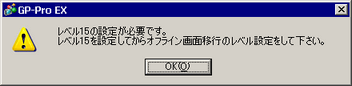 「オフライン画面移行」では、レベル0またはレベル15のどちらかを設定します。