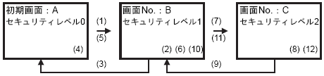 一度セキュリティレベルが高くなると、自動クリアされるか、セキュリティコントロールアドレス(LS9300)でクリアするまで、現在レベルが下がらないため、自由に画面切り替えができます。