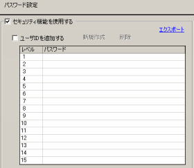 設定したユーザID/パスワード/レベルを書き出します。指定した出力先に[security]フォルダが作成され、その中にファイルが書き出されます。