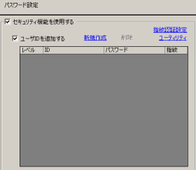 [ユーザIDを追加する]にチェックを入れると[新規作成]、[削除]の表示が有効になります。[新規作成]を選択すると、パスワード/ユーザIDの登録行が1行追加されます。[削除]を選択すると、指定している行が削除されます。