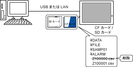 例)CFカード/SDカード内のアラームデータ(Z100000.csv)を削除