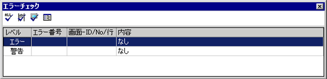 初期設定では、エラーチェックウィンドウは隠し表示設定になっています。画面左下の[エラーチェック]タブにカーソルを合わせると、エラーチェックウィンドウが表示されます。