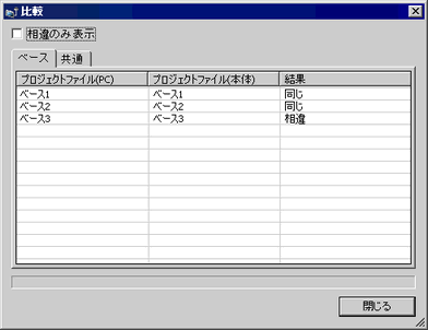[相違のみ表示]にチェックを入れると、比較結果が[同じ]もの以外を表示します。