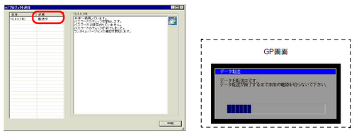 転送中はダイアログボックスが表示され、通信状態が確認できます。