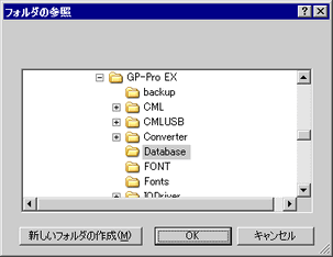 レシピ機能(CSVデータ)などCFカード/SDカードデータを使用しているプロジェクトファイルを受信する場合は、受信中に、次のようなダイアログボックスが表示されるのでCFカード/SDカード内のデータを保存する場所を指定してください。[OK]をクリックすると、[プロジェクト受信]ダイアログボックスに戻り転送を完了します。