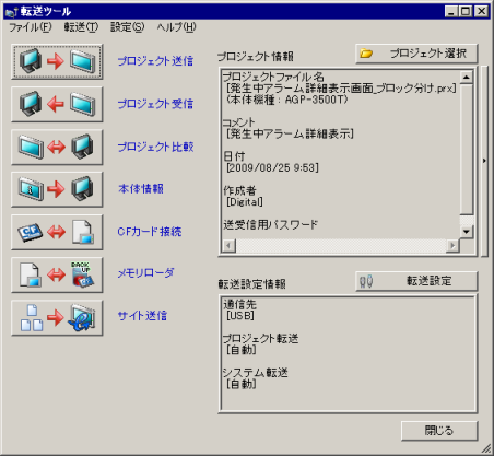 ダイアログボックスを閉じると転送ツールに戻ります。[閉じる]をクリックして転送ツールを閉じます。