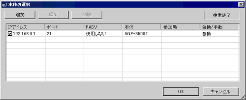 次のような[本体の選択]ダイアログボックスが表示され、ネットワーク上にある表示器のIPアドレスが表示されます。表示器のIPアドレスにチェックを入れて、[OK]をクリックします。受信が開始されます。