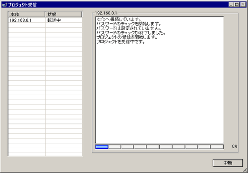 受信中は次のダイアログボックスが表示され、通信状態が確認できます。
