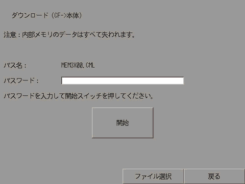 ダウンロードを行うと、ダウンロード前に表示器内に入っていたプロジェクトのデータ(バックアップメモリ内のデータを含む)は消去されます。
