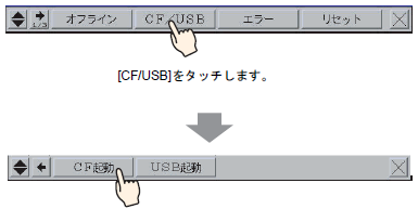 [CF/USB]をタッチします。[CF起動]をタッチすると、表示器が自動的にリセットされます。