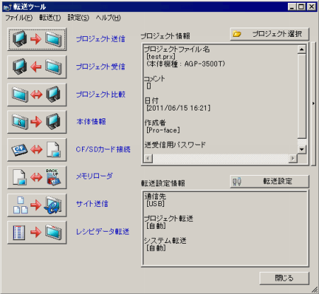 ダイアログボックスを閉じると転送ツールに戻ります。[閉じる]をクリックして転送ツールを閉じます。