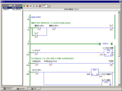[ロジックビュー]では、ロジックプログラムが動作中の場合は緑色のラインで示されます。