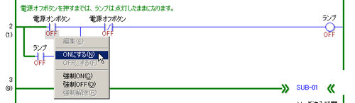 シンボル変数のON/OFFを切り替える場合は、右クリックで[ONにする]/[OFFにする]、[強制ON]/[強制OFF]を選択します。