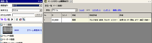 選択している画面内で使用されている部品の属性を一覧表示します。ただし、[描画]、[トリガアクション]、[Dスクリプト]は一覧表示しません。