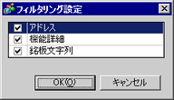 [フィルタリング設定]ダイアログボックスが表示されます。[アドレス]、[機能詳細]、[銘板文字列]の項目を部品一覧に表示するかどうかを設定します。