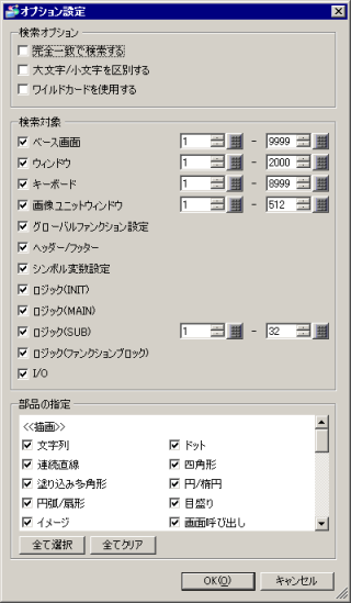 ウィンドウ画面を検索対象とするかどうかを指定し、検索範囲を1~2000で指定します。