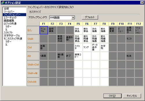 ファンクションバー項目設定