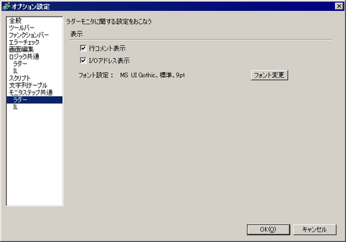 色変更する項目を[背景]、[行コメント]、[オペランド]、[現在値]、[強制変更値]、[I/Oアドレス]、[命令・母線・行]、[パワーフロー]、[PID]、[罫線]、[SOR]、[命令]、[分岐命令]、[ラベル]から選択します。
