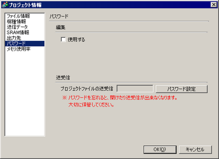 プロジェクトファイルの編集や転送にパスワードを設定します。