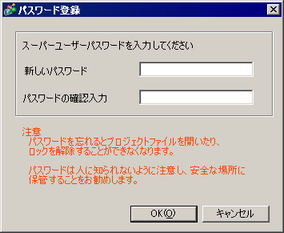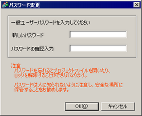 プロジェクトファイルの編集を許可したり、部品操作をロックしたりするためのパスワードを設定します。
