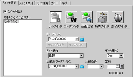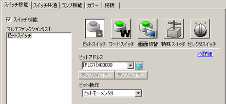 [ランプ機能]タブの[ビットアドレス]を[スイッチ機能]タブの[ビットアドレス]にコピーします。ランプ機能とスイッチ機能で同じアドレスを設定する場合に使用します。
