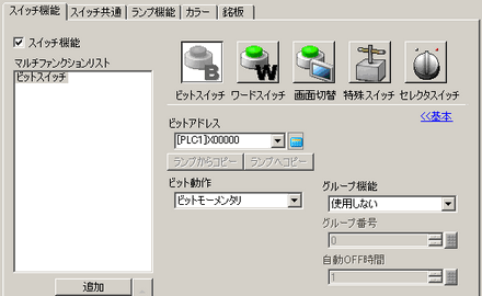 複数スイッチを1つのグループとして扱い、グループ内の1つのスイッチをONすると、その他のスイッチはOFFになります。[ビット動作]が[ビットセット]の場合のみ設定できます。