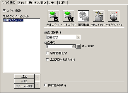 スイッチを押すと、表示中の画面から指定した画面へ表示を切り替えます。