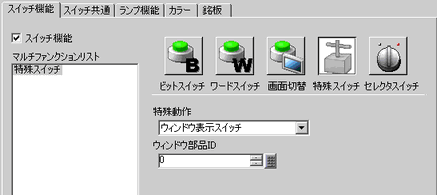 ウィンドウをスイッチで起動する場合に設定するウィンドウ部品に付属するスイッチと同じです。スイッチを押すと指定したウィンドウを表示し、もう一度押すとウィンドウを閉じます。