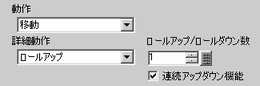詳細動作]で[ロールアップ]、[ロールダウン]を選択した場合に、タッチしている間ロールアップ(またはロールダウン)を続ける機能を使用するかどうかを指定します。