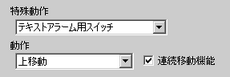 テキストアラーム部品を操作するスイッチの動作を[上移動]、[下移動]、[ロールアップ]、[ロールダウン]、[サブ表示]、[終了]から選択します。