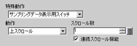 特殊データ表示器[CSV表示]を操作するスイッチの動作を[上スクロール]、[下スクロール]、[左スクロール]、[右スクロール]、[印刷-全体]、[印刷-表示]から選択します。