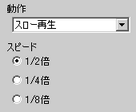 動作]で[スロー再生]を選択した場合に、再生速度を[1/2倍]、[1/4倍]、[1/8倍]から指定します。
