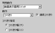 [動作]で[コマ送り](または[コマ戻り])を選択した場合に、スイッチを押している間、連続してコマ送り(またはコマ戻り)を行うかどうか指定します。